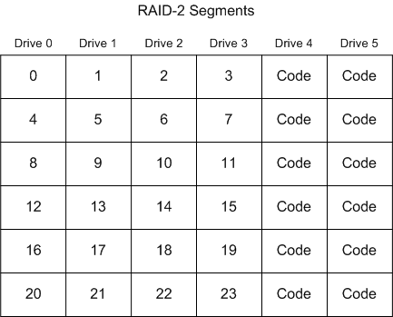 Instead of using a simple parity to validate the data (as in RAID-3, RAID-4 and RAID-5), it uses a much more complex algorithm, called a Hamming Code. A Hamming code is larger than a parity, so it takes up more disk space, but, with proper code design, is capable of recovering from multiple drives being lost. RAID-2 is the only simple RAID level that can retain data when multiple drives fail.